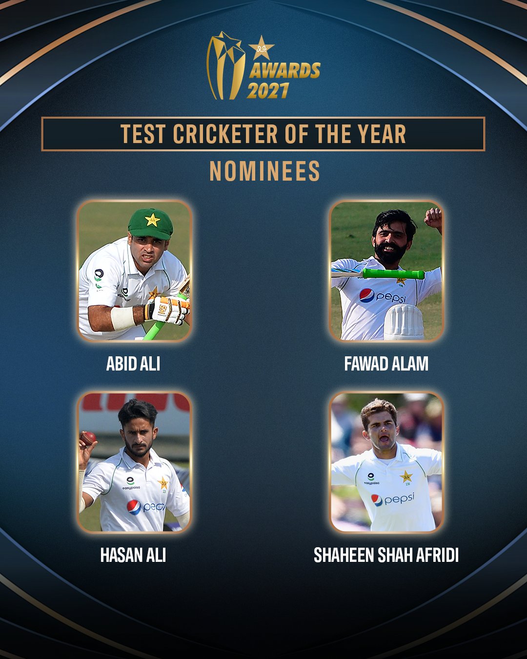 ٹیسٹ کرکٹر میں عابدعلی، فواد عالم، شاہین آفریدی اور حسن علی موجود ہیں۔