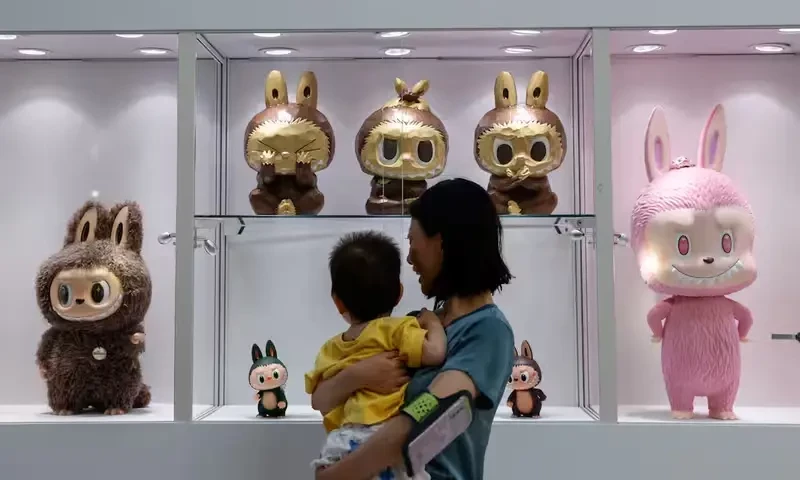 A buyer of a blind box toy does not know exactly what design they will receive until they open the packaging. The starting price for Labubu blind box toys sold in Pop Mart’s stores is around 50 yuan.