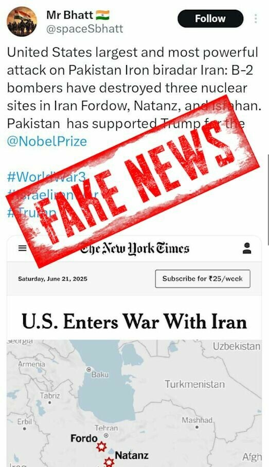Following recent US air strikes on Iranian nuclear sites, a surge of fake news and misinformation has emerged on social media, falsely alleging Pakistani military cooperation in the attacks.