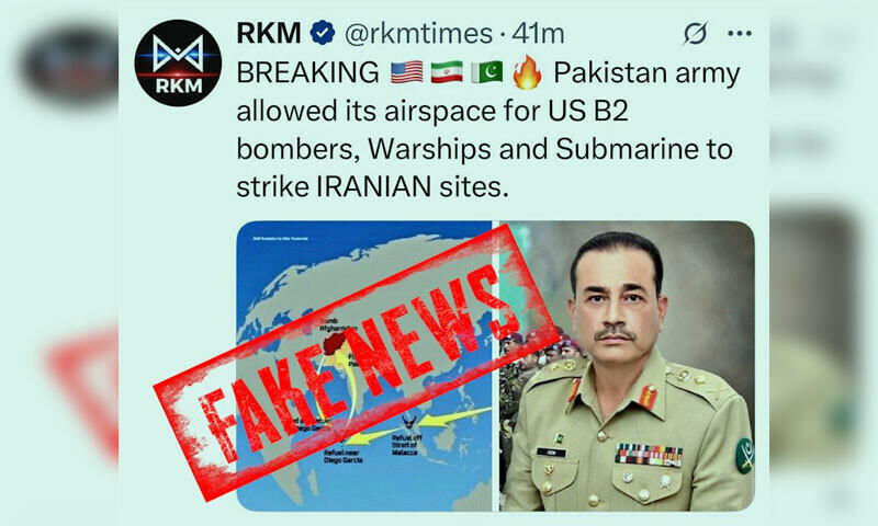 False claims, particularly from anti-state and foreign social media accounts, including Indian handles, have circulated widely — most notably a post by the account @rkmtimes on platform X, alleging that Pakistan allowed its airspace, waters, and military facilities to be used by US bombers, warships, and submarines.