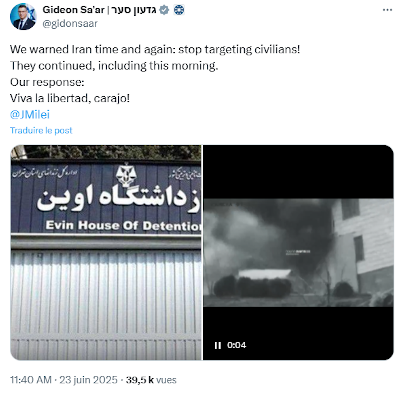 Israeli Foreign Minister Gideon Saar had earlier shared footage of the prison being targeted on his X account and wrote “long live freedom” in Spanish.