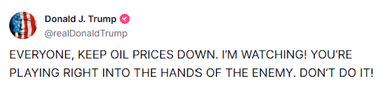 The former president’s emphatic message reflects growing concerns in the United States about surging energy costs and their impact on both domestic and international markets. His tone suggested alarm over the geopolitical consequences of higher oil prices, hinting that such moves could benefit adversaries.
