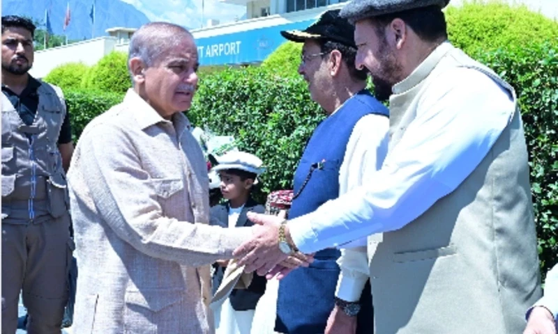 On arrival in Gilgit, PM Shehbaz was received by Governor Syed Mehdi Shah and CM Gulbar Khan.