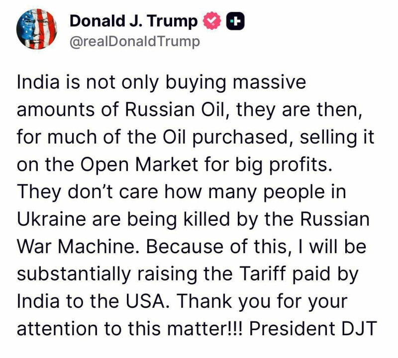In this latest statement on Truth Social, Trump lambasted the Indian government for buying “mass amounts of Russian Oil” and also selling it on the Open Market for “Big Profits”.