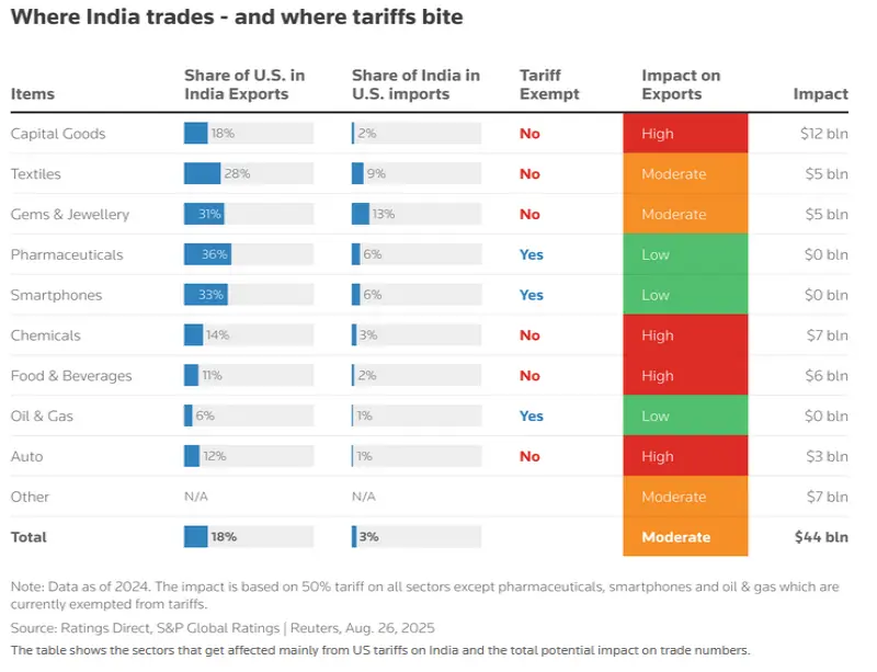 Over 50,000 exporters among India’s nearly 60 million small enterprises, spanning sectors including textiles, jewellery and chemicals, face the tariff spike, but the government has yet to announce any financial or credit support for those affected.