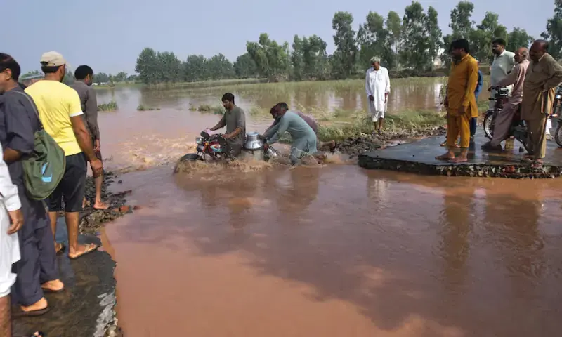 In Vehari, a breach has occurred in the protective embankment of the Sutlej River, causing flooding in areas, including Khichi, and severing land communication. Evacuation of people is underway from the affected areas.