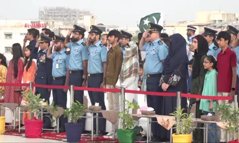On this occasion, Air Vice Marshal Shehryar Khan, the chief guest, paid respects at the mausoleum, offered Fateha, and laid a floral wreath.