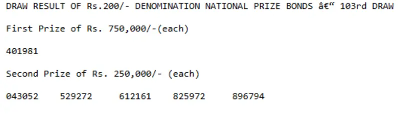 National Savings Centre Multan has announced the winning numbers for the Rs200 prize bond draw of September 15, 2025.