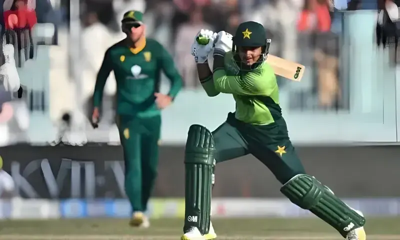 Salman Ali Agha and Saim Ayub steadied the innings with a 92-run partnership. Both reached half-centuries before Saim departed for 53. Salman played a composed knock of 69 off 82 balls, including three fours.