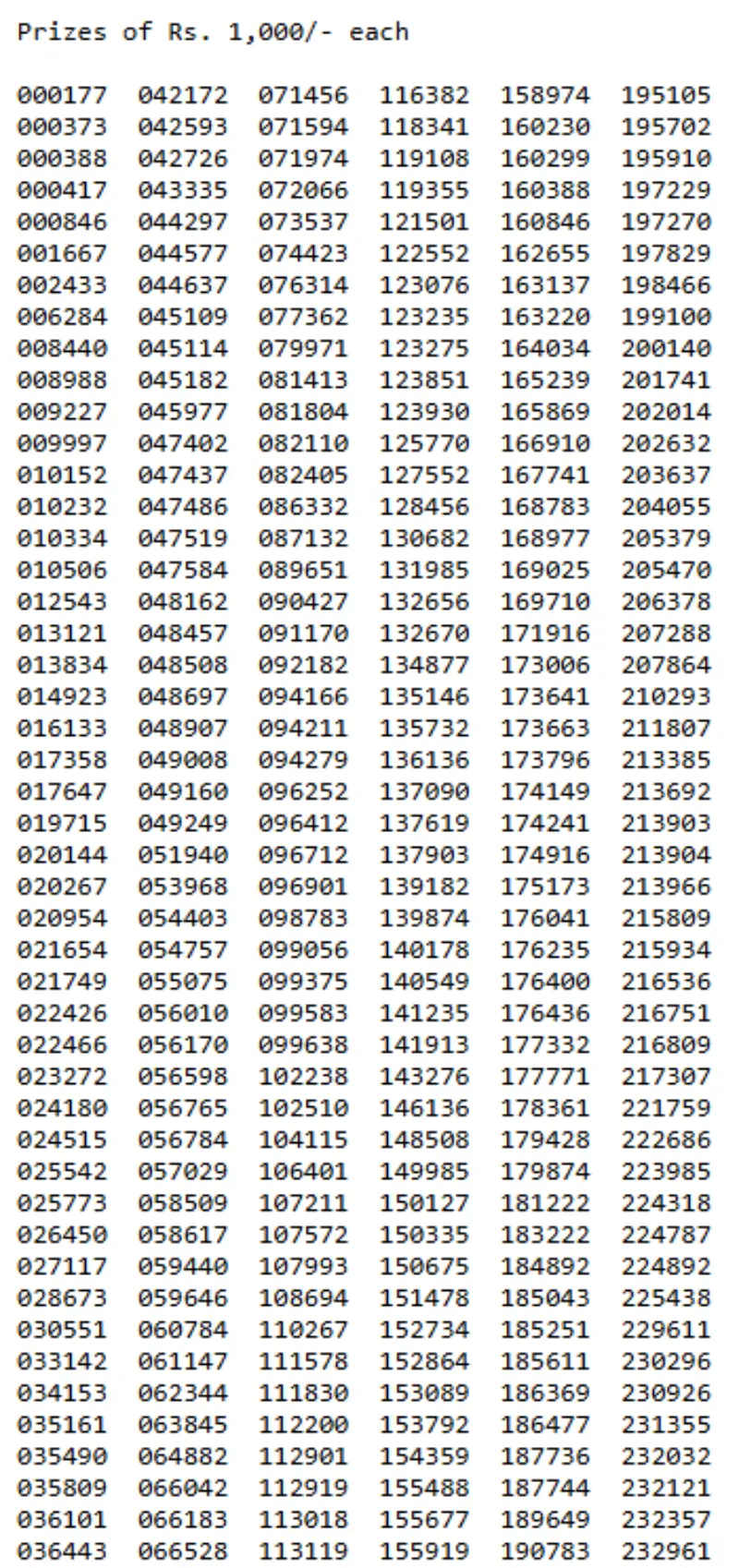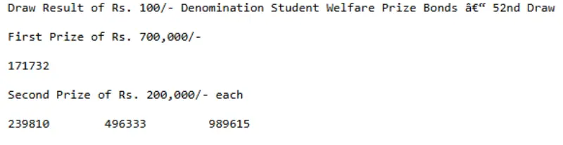 A lucky person holding bond number 171732 won the first prize of Rs700,000, while people holding bond numbers 239810, 496333, and 989615 won the second prize of Rs200,000 each.