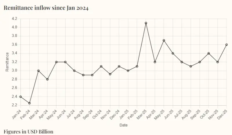 Overseas workers’ remittances to Pakistan rose to $3.59 billion in December 2025, posting solid growth on both a monthly and yearly basis, data released by the State Bank of Pakistan (SBP) showed on Friday.